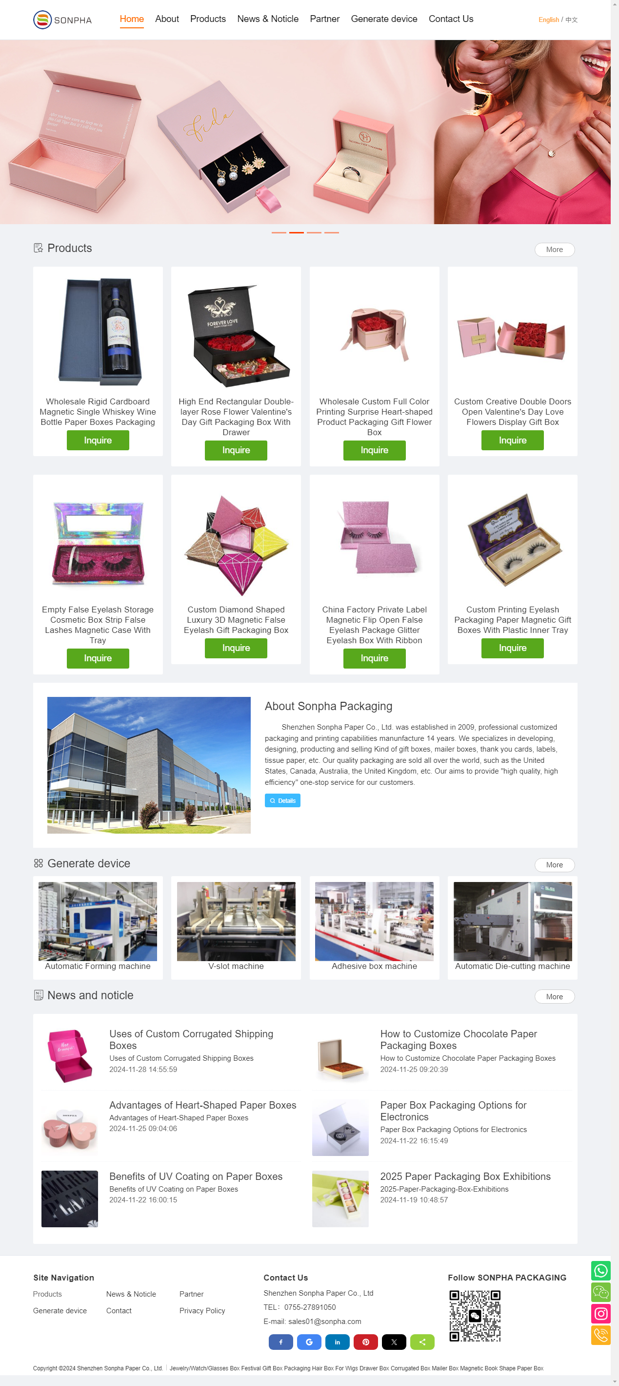 | 案例简介 | 深圳市兴鸿发纸品有限公司成立于2009年,专业从事手工包装盒研发设计生产及销售,主营精品盒, 化妆品盒, 珠宝盒, 纸袋, 说明书等相关产品。 |